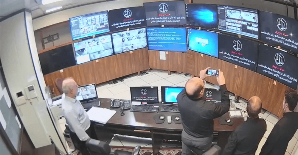 This clip of a security control room at Iran's most notorious prison being shut down by hackers is straight out of a movie.